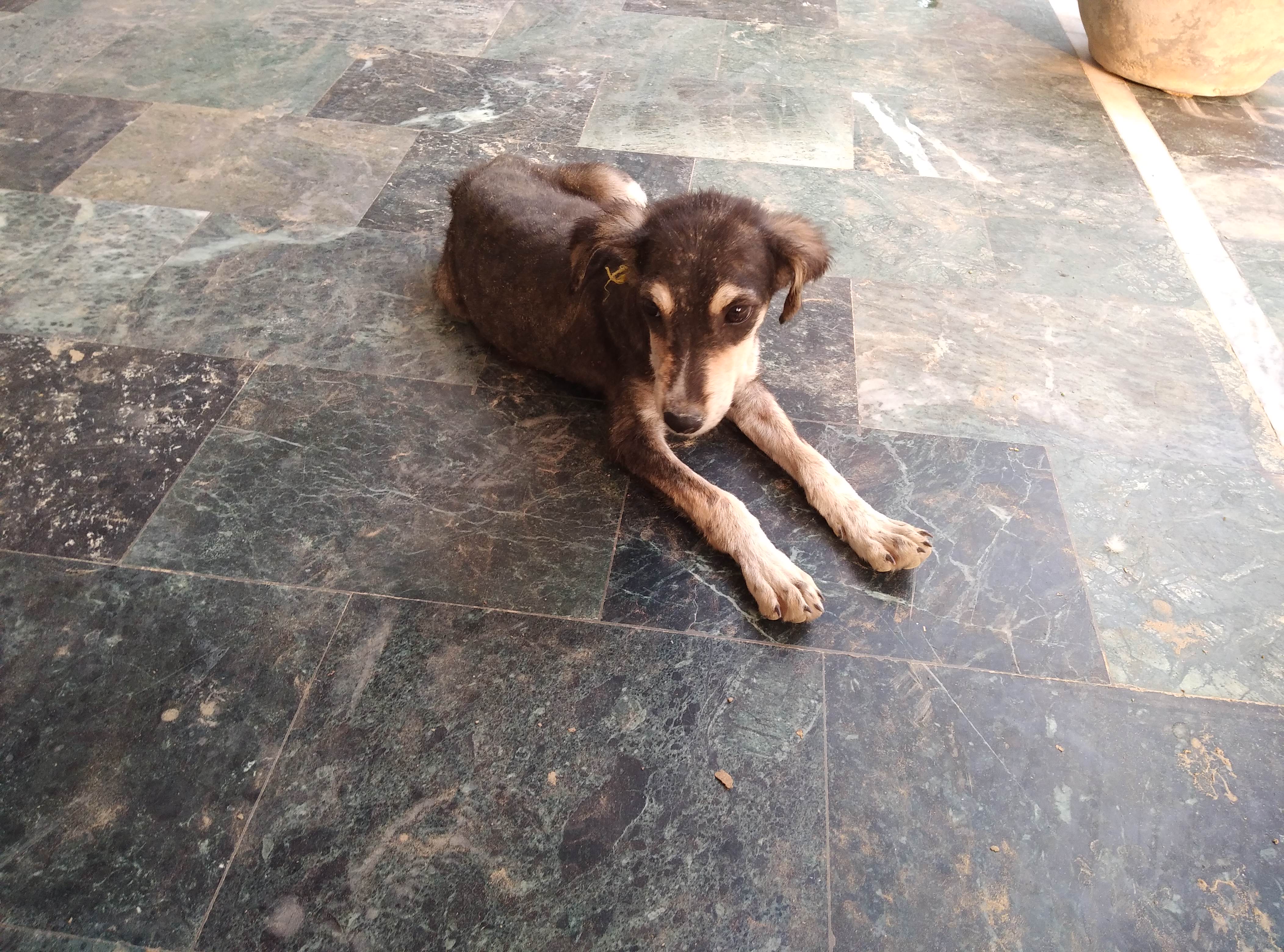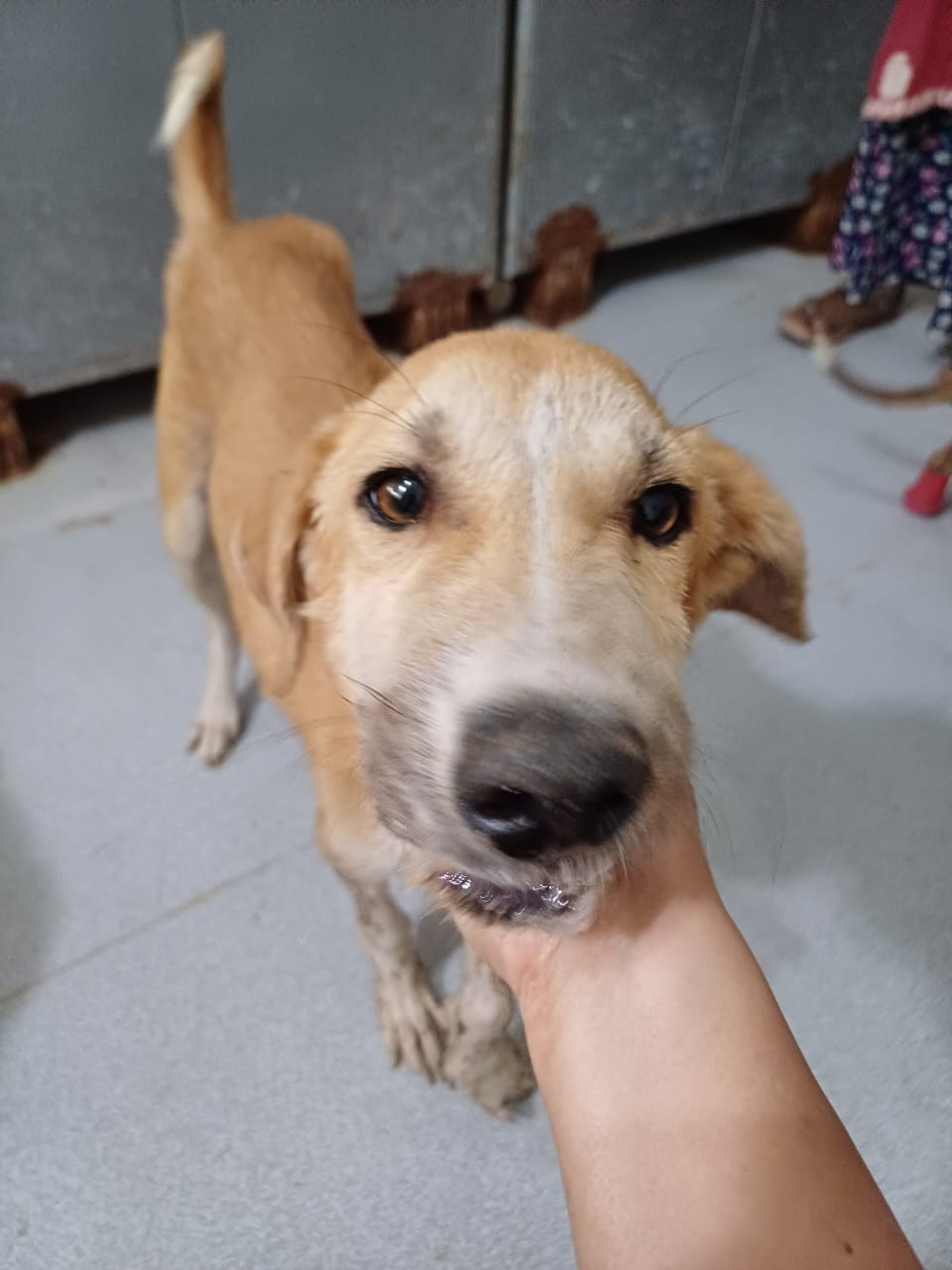 Toffee was an orphan puppy when he came to us. His mother had died and he had stopped eating. So someone brought him to the shelter. Gradually he started eating and is this shelter is his home now. He is a very friendly dog