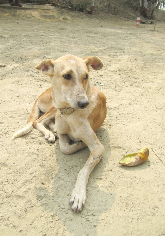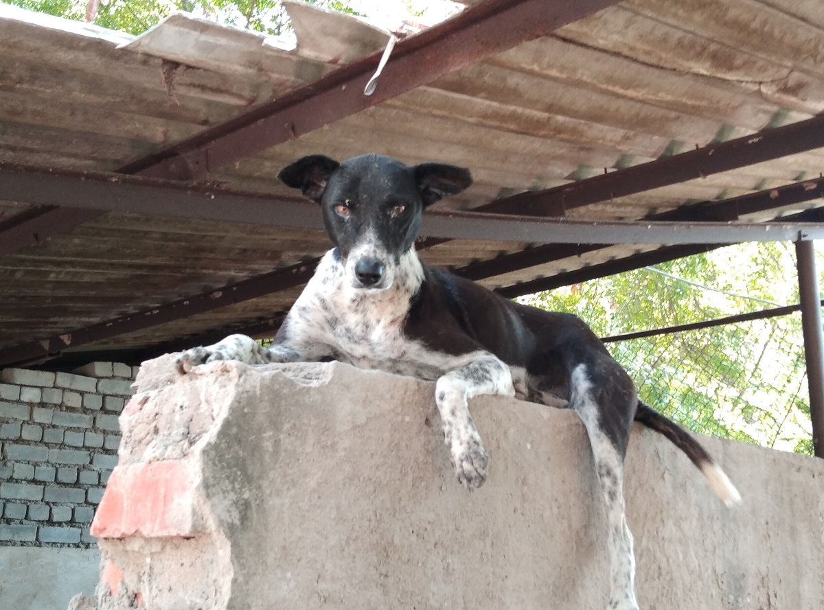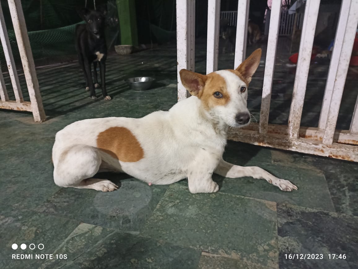 Bhola came to us with a maggot wound in his ear. Maggots had eaten his ear and the flesh around it. That's why you see him with a missing ear. As is the case with all maggot wounds, his recovery took quite some time. He is a very calm and gentle dog and that's why we named him BHOLA, meaning simple minded. He now stays with us at the shelter